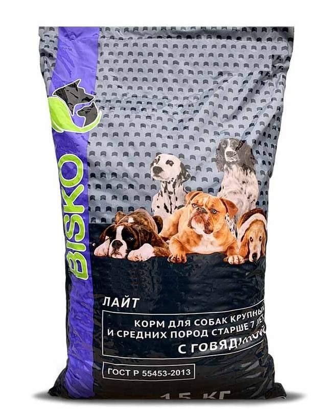 БИСКО ЛАЙТ — сбалансированный высококачественный сухой корм для взрослых собак с излишним весом и престарелых собак.