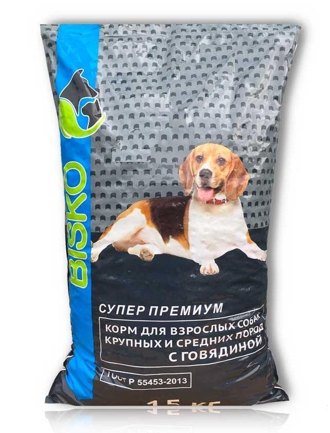 Сухой корм БИСКО СУПЕР ПРЕМИУМ для взрослых собак крупных и средних пород с высоким уровнем активности
