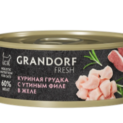 Grandorf Fresh Консервы для взрослых кошек c куриной грудкой с утиным филе в желе